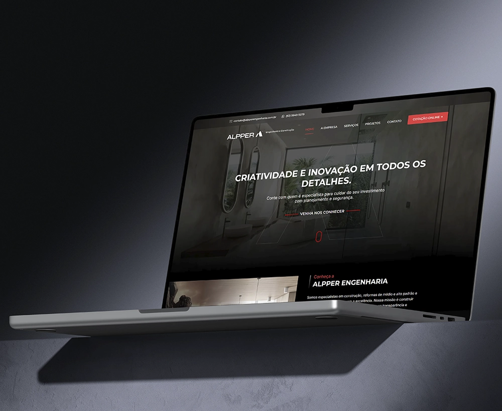 Alpper Engenharia, uma empresa especializada em construção, reformas e vistorias de alto padrão. O objetivo principal foi criar um site institucional moderno, elegante e confiável, capaz de reforçar a autoridade da marca no setor da engenharia civil e transmitir profissionalismo em cada detalhe do design.