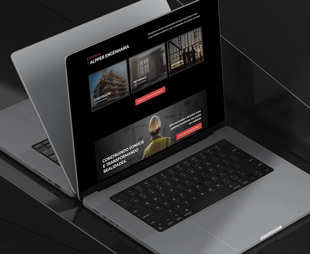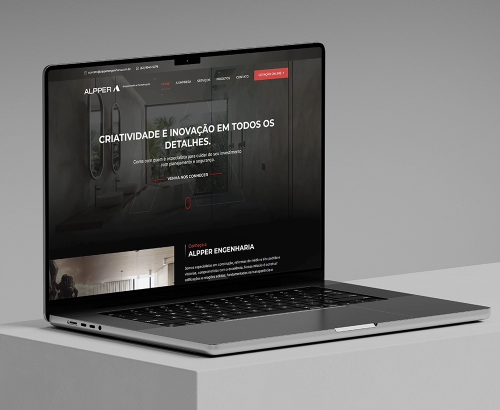 O resultado é um site institucional de alto impacto, com design limpo, navegação intuitiva e foco em resultados — fortalecendo o posicionamento da Alpper Engenharia como referência em construção e inovação no mercado.
